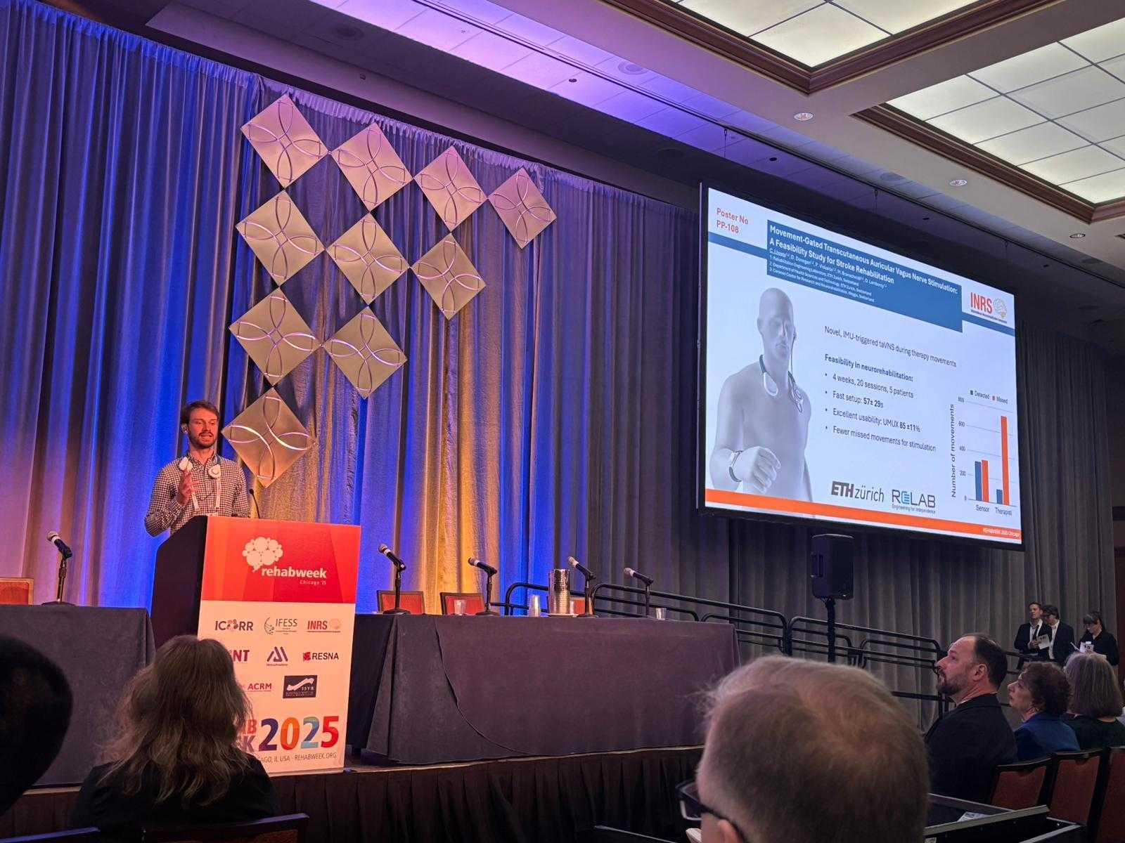 Special congratulations to our team member Clément Lhoste, whose poster showcasing the first results from our clinical research on non-invasive vagus nerve stimulation for stroke rehabilitation was selected among the finalists of the poster award — a fantastic recognition in a highly competitive field! We’re also thrilled that two of our students, Jannis Gabler and Flaminia Pallotti, presented their research in the poster session, and by the many talks and workshops given by our friends and colleagues at RELab ETH Zürich.